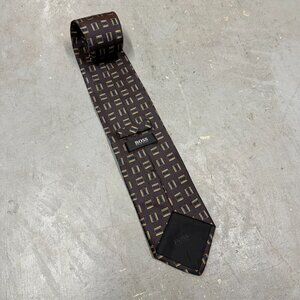 Hugo Boss Tie 100% Silk Woven Box Pattern Made in Italy Brown 3.75"