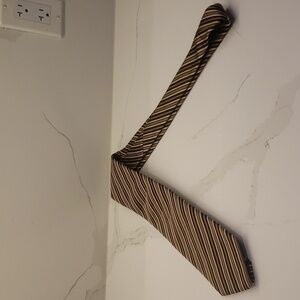 This men's brown stripped tie is in very good condition. No tears, rips or stains. See photos for measurements and condition.