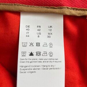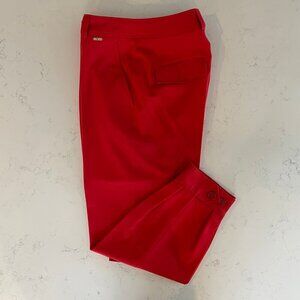 Hugo Boss Tunnai Hi Waisted Relaxed Fit Wool Poly Blend Textured Ankle Length Cargo Pants w Button Cuff Detail In Red NWOT