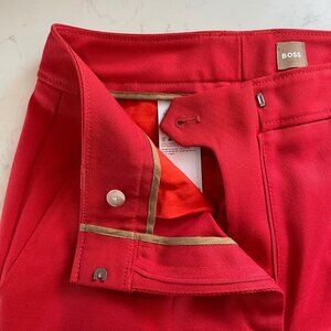 Hugo Boss Tunnai Hi Waisted Relaxed Fit Wool Poly Blend Textured Ankle Length Cargo Pants w Button Cuff Detail In Red NWOT
