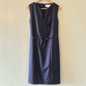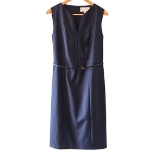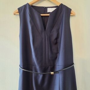 Hugo Boss Virgin Wool Women's Professional Knee length Belted Dress Navy Size 10
