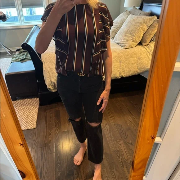 Stylish striped Hugo boss maroon top. Like new. Worn once. Feels high quality.