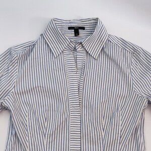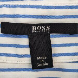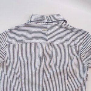 Hugo Boss blouse women's size 8 white with blue stripes business casual