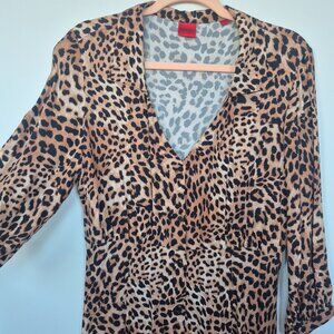 Never worn Hugo leopard midi dress. Buttons up in the front with 3/4 sleeve. Size US 6