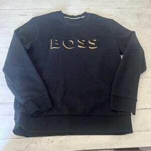 Boss "Stadler" men's cotton sweatshirt, black, crew neck, ribbed edges, iconic maxi logo contrast and in relief black and beige overlay on front, regular fit, ideal for a sporty look in spring and summer seasons.