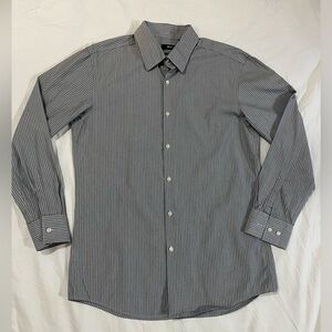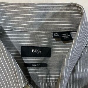 Hugo Boss stripped button down grey-white slim fit casual preppy Dress shirt