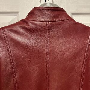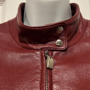 Hugo Buscati Maroon Leather Moto Biker Jacket Size S