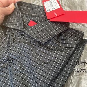 Description: Slim-fit shirting woven in a two-tone grid pattern; Cutaway collar; Long sleeves; Adjustable button cuffs; Button front; Slim fit; Cotton; Machine wash; Imported; .