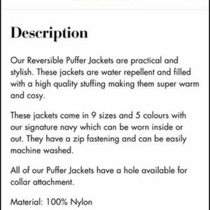 Brand new! Reversible puffer vest dog jacket. Size XS-30.