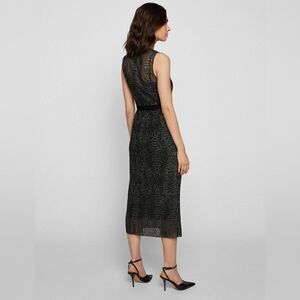 A feminine dress in a regular fit with a pleated skirt, by BOSS Womenswear. This sleeveless dress is crafted in delicate tulle embroidered with an animal print