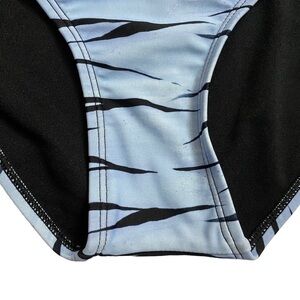 Features: Blue Wild Cat Bikini Bottoms, hipster fit, sits at hips, moderate coverage, light blue, black, tiger print, summer, swimming, beach, vacation, sunbathing, travel, cottage, camping, pool