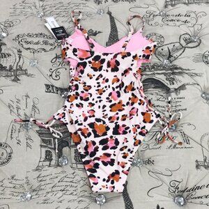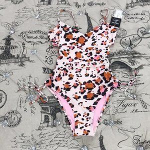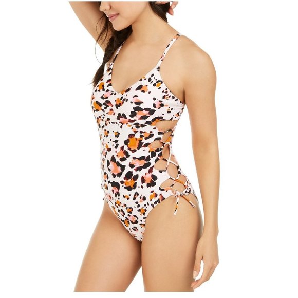 Hula Honey has your swim style all tied up with this cool one-piece, a sleek V-neck design accented by a fierce animal print and edgy lace-up details at the sides.