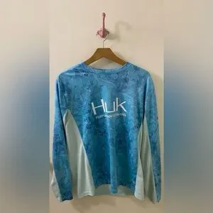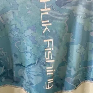 Hulk Fishing performance rash guard shirt with aqua camouflage design. Lightweight and breathable fabric. No flaws to be noted. In excellent condition.