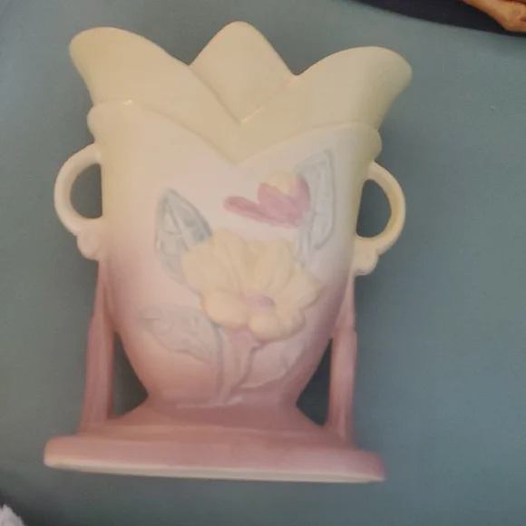 Enhance your home decor with this elegant pastel floral ceramic vase. Featuring soft cream and pink hues, it adds a touch of sophistication to any room.1940