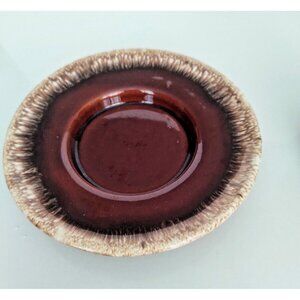 Vintage Hull Pottery Brown Drip Pattern Mini (4.25") Pitcher - Oven Proof USA underplate has a 6" diameter