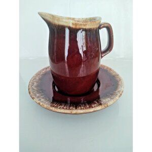 Hull Pottery USA Crestine Pottery Brown Drip Pattern Pitcher & Underplate