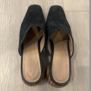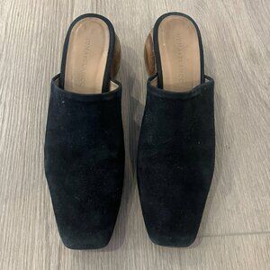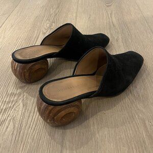 Huma Blanco Mina Black Suede Heeled Mules with Round Wood Heel, Size 36