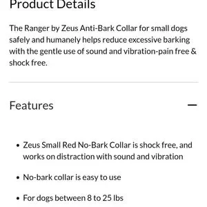 Zeus anti-bark collar is water resistant and uses sound and vibrations to humanely reduce excessive barking. Size LARGE.
