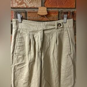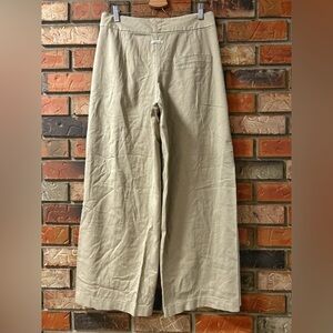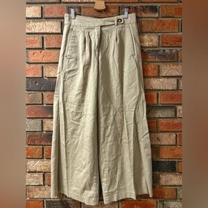 Humility High Rise Wide Leg Pleated Front Khaki Trousers