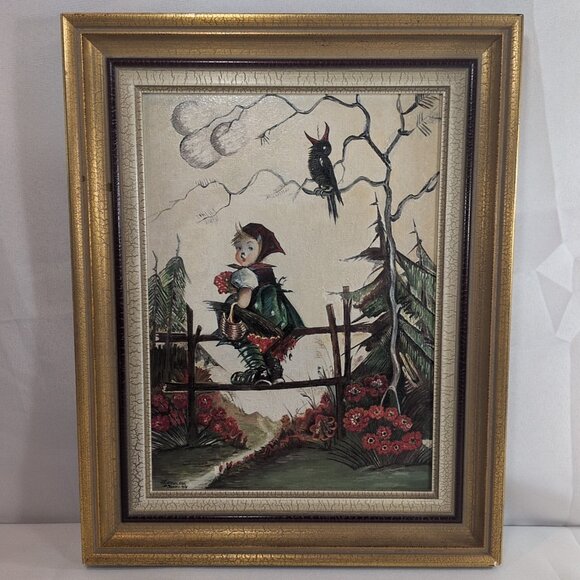Hummel Kop. Jansen 1976 Girl on Fence Vintage Art Red Riding Hood Reproduction