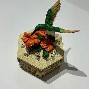 Charming trinket box featuring a colorful hummingbird and floral design. Perfect for storing small treasures.