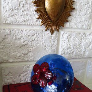 Hummingbird feeder ,blue glass, red flower made in Mexico