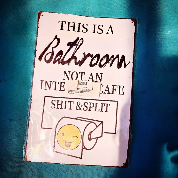 Whether you're trying to save downloads Gigs on your business WiFi or simply spend more time with your family ๐๐ This humorous bathroom ๐ป sign should get the job done! ๐ This sign is NEW as I received accidentally when I ordered a different one and subsequently was told to keep. There is however a bend of sorts in the top left side but as it's thin metal I'm sure it can be bent perfectly straight not that you would need to but in order to adhere to full disclosure I feel I should add. There's no way to get a pic as it's not noticeable lol ๐ Any questions just ask.