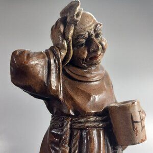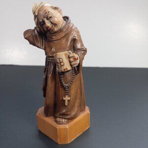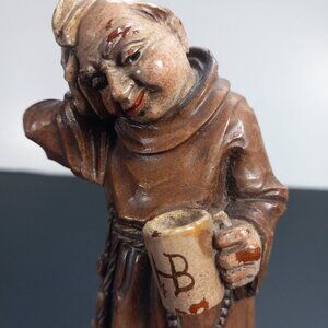 Hungover Monk Figurine Italy Anri Toriart Vintage Resin HB Beer Stein Wood Base