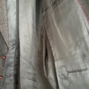 Design: Brown tweed with suede-like elbow patches and pockets lined in the same suede-like fabric