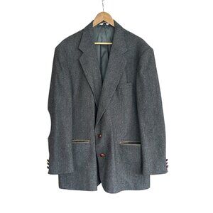 Hunt Valley 100% Pure Wool Brown Tweed Blazer 48L Suede Elbow Patches Made in US