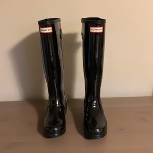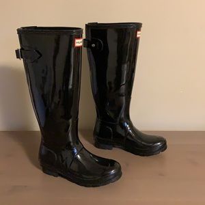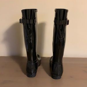 Hunter Black Patent Rubber Riding Boots with Adjustable Straps - Women’s Size 5