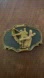 Rare belt buckle featuring a hunter with a bow. Brass gold and black. Would make a great gift.