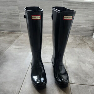 Hunter Glossy Black Tall Rain Boots With Adjustable Calf Strap Size 9 Rainboots