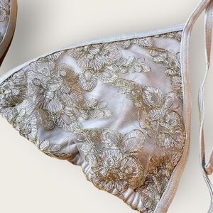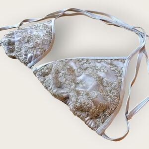 Hunter McGrady×Playful Promises Gold Embroidered Bikini Swim Top