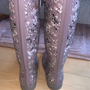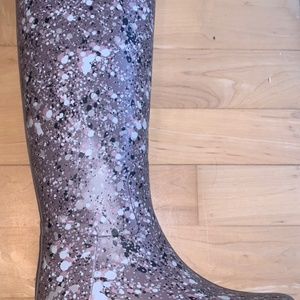 Rare mauve/speckled coloured Hunter rainboots, they no longer make this style or colour! Only worn about five times (purchased a size too small). Completely waterproof, quite comfortable, perfect rain boots. Knee-high rise (for someone 5’4” tall). Got lots of compliments the few times I wore them!