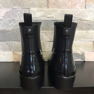A rain boot that doesn't look like a rain boot. Finished in a classic black with a striking matte and gloss contrast, the Original Refined Low Heel boots are handcrafted from natural rubber with a slim fit for a more refined look.