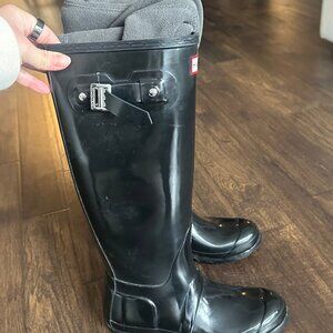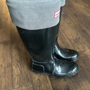 Hunter Tall Rain Boots — Black — Women's Size 6 w/ Fleece Boot Socks