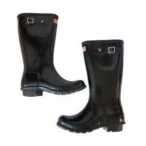 Hunter Youth Unisex Rain Boots Mid-calf Black Gloss Outdoor Sz 2 B/ 3G