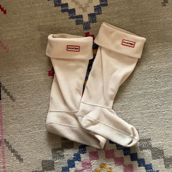 Creamy white Hunter boot socks Size medium (5-7) Bottom of socks are a bit discoloured due to black boots. From smoke free, pet friendly home