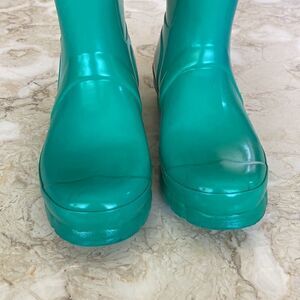 In very good preowned condition, with very little wear, Hunter shirt glossy rain boots in beautiful teal green colour.