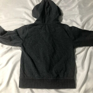 This hoodie is a size small (US 5/6) for kids and is grey with a red inner hood lining.