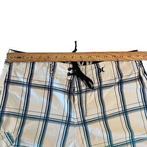 Hurley Mens Board Shorts Plaid Classic White Blue Double LaceTie Size 32