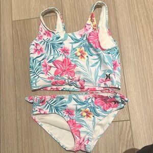 Hurley Pink and Blue Floral Bikini Swimwear girl size 8-10
