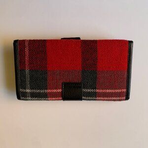 Hurley Red & Black Plaid Wool Wallet with Studded Leather Trim
