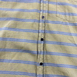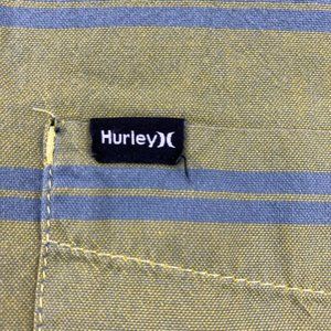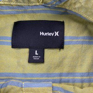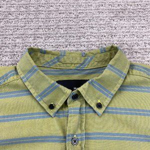 Hurley Shirt Men Medium Large L Green Blue Striped Button Down Short Sleeve Surf