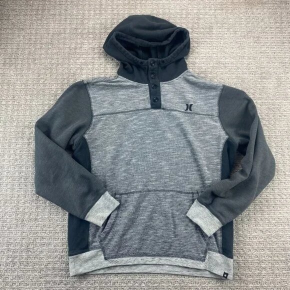 Hurley Sweater Men Large L Gray Hoodie Pull Over 1/4 Button Casual Logo Sports