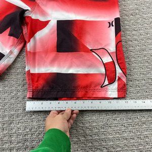 Hurley Swim Trunks Men 36 Red Black Bathing Suit Board Shorts Embroidered Logo