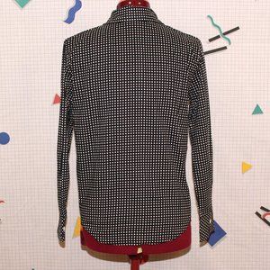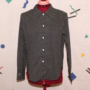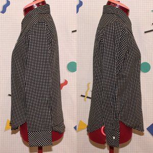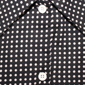 Black polka dots shirt from Hurley. Has white buttons and comes with a plain black tie. Never worn, washed once. Made in China. 100% cotton. Measurements lying flat are: 19"(38") bust, 18½"(37") waist, and 18½"(37") hips. Tie is 56" long, 2" at the widest part, and 1¼" at the narrowest past. Tags: punk, goth, y2k, alternative, skater