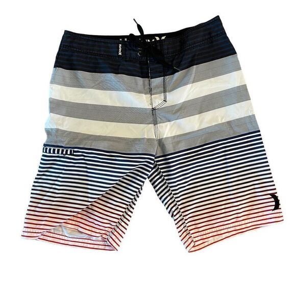 Hurley Board Shorts Swimming Trunk Shorts Men's 34 Striped Zipper Pocket