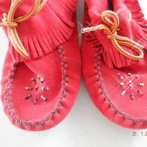 Selling beautiful Huron Indians hardsole lace-up suede moccasins slippers: